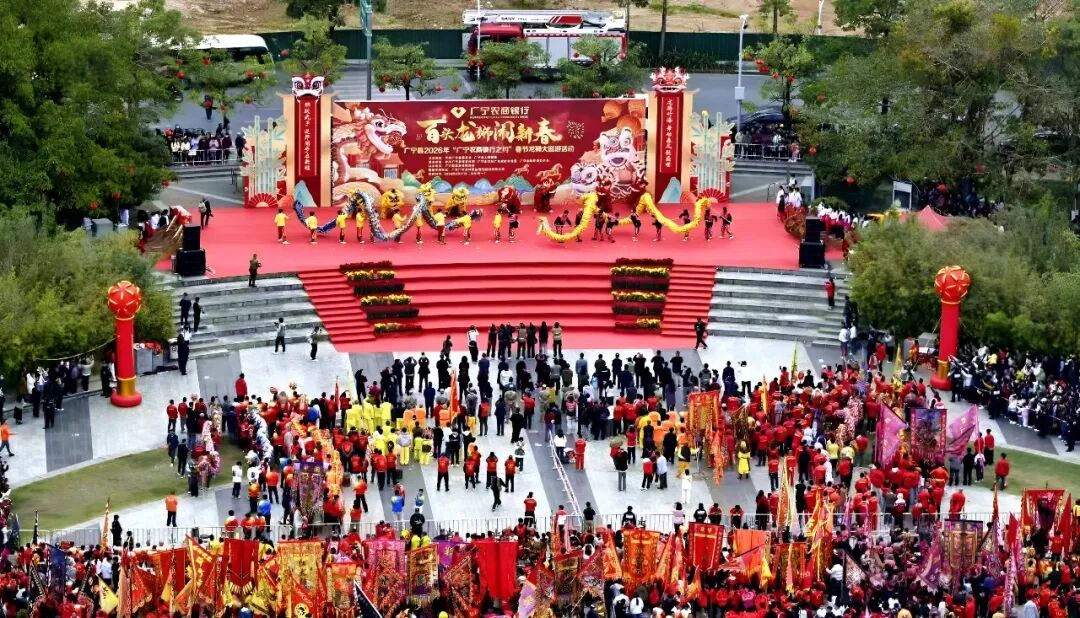 广宁县作为首批“全国武术之乡”,武术龙狮文化源远流长,千年武脉深植沃土,龙狮运动更是成为群众喜闻乐见的民俗活动,全县龙狮队伍遍布城乡,春节龙狮巡游已传承七十余载,成为广宁独具特色的春节文化品牌。